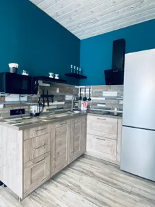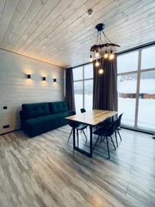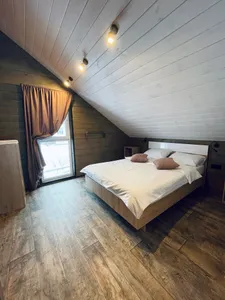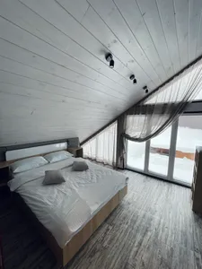 Внутри каждого шале полностью укомплектованные кухни, теплые полы, безупречная чистота! Для гостей предусмотрены белоснежное постельное, полотенца и гигиенические принадлежности.