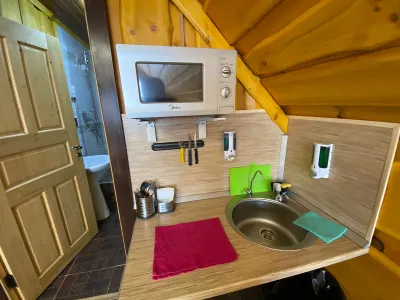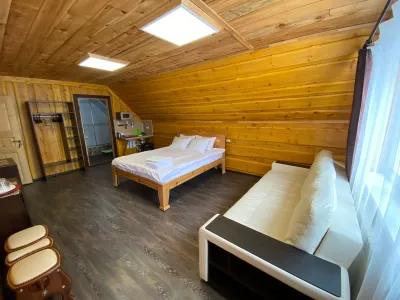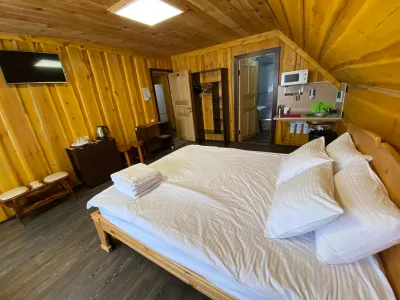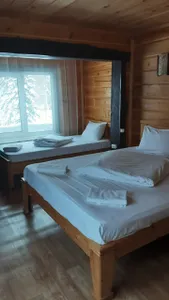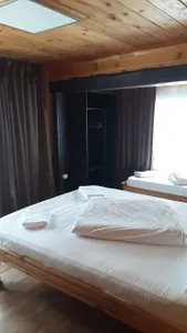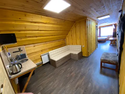 Хороший персонал. Администраторы ответят на любой вопрос, помогут с такси, с организацией питания(заказать доставку из ближайшего кафе, кафе, нормальное, еда вкусная)готовить можно самим на кухне(плита нормальная, посуда чистая, все аккуратно, есть холодильник. Недалёко от горы, видно из окон номера. Есть сушилка для снаряжения на 2м этаже. При входе есть место для хранения досок и лыж, чтобы в номер не тащить.